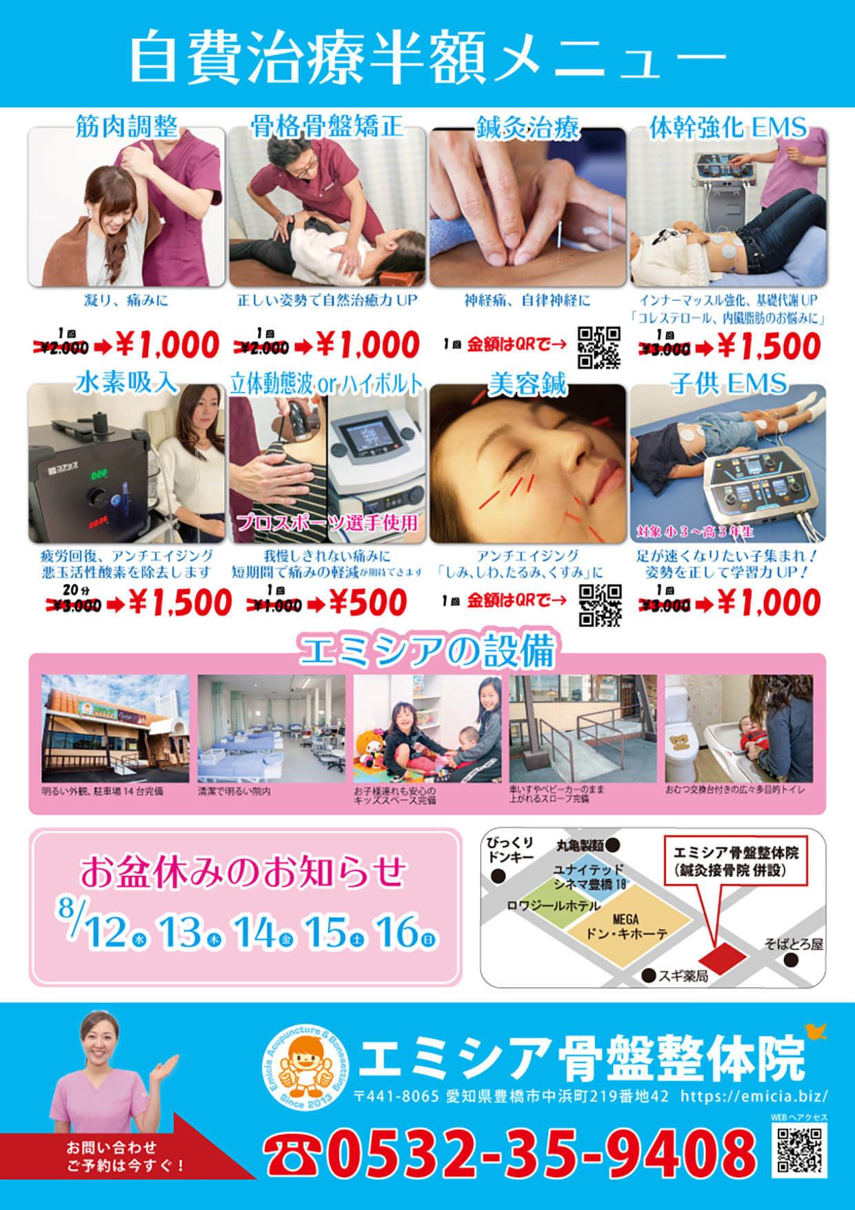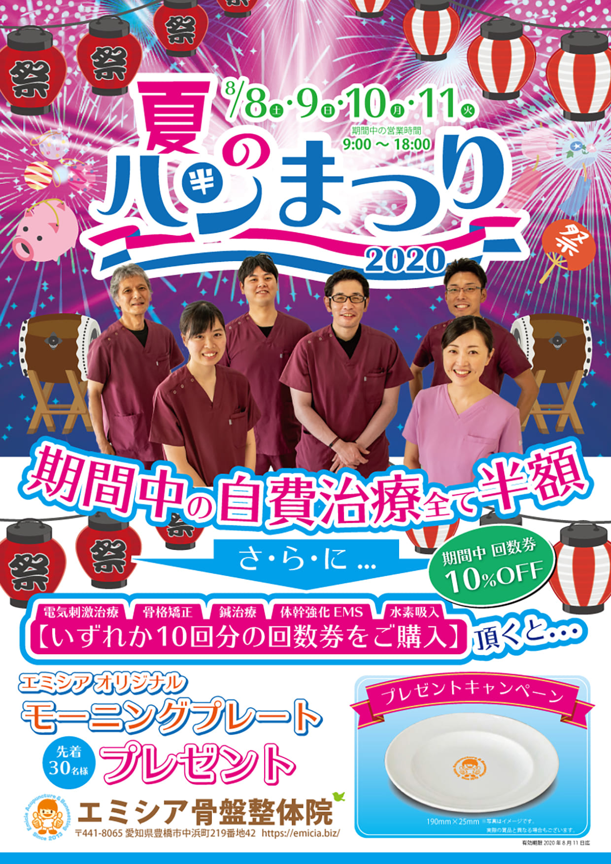 半祭り開催中の4日間は、なんと自費治療メニュー半額!!