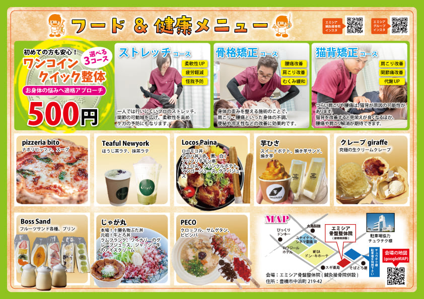 キッチンカーがエミシア鍼灸接骨院に大集合します!