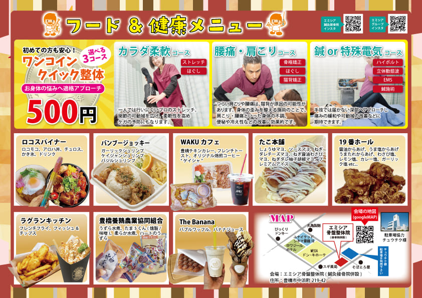 キッチンカーがエミシア鍼灸接骨院に大集合します!