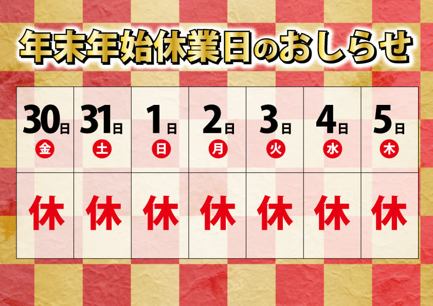 【お知らせ】年末年始の休業日