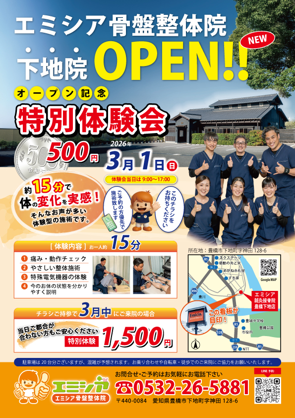 エミシア鍼灸接骨院 豊橋下地院 2026年3月1日(日)OPENのお知らせ