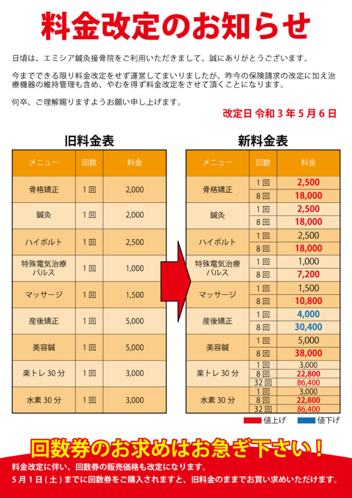 日頃は、エミシア鍼灸接骨院をご利用いただきまして、誠にありがとうございます。