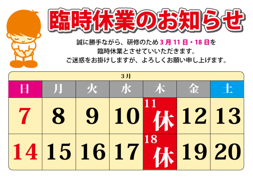 【お知らせ】臨時休業のお知らせ